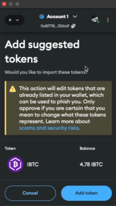 To see the iBTC token instead of dlcBTC in your wallet, follow these instructions: